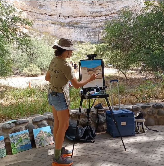 Painting Montezuma Well on a 110 degree day. Picture credit to park volunteer Susan!